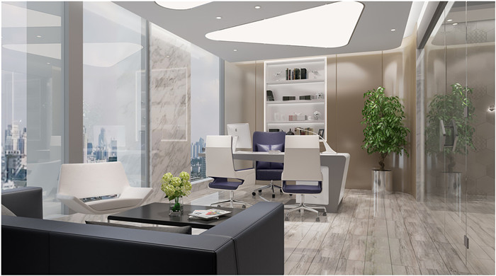 3、辦公室設(shè)計(jì)風(fēng)格整體以現(xiàn)代風(fēng)格為主,表現(xiàn)企業(yè)與時(shí)俱進(jìn)的理念;形象墻采用石材,玻璃高隔滿足空間的通透性,動(dòng)線簡(jiǎn)潔而流暢。會(huì)議室頂面方通結(jié)合圈定,滿足消防的同時(shí),讓頂面不顯壓抑。走廊是人流量較多的地方,辦公室走廊裝修設(shè)計(jì)地面選擇的是瓷磚,頂面對(duì)應(yīng)做了石膏板吊頂,上下呼應(yīng)。