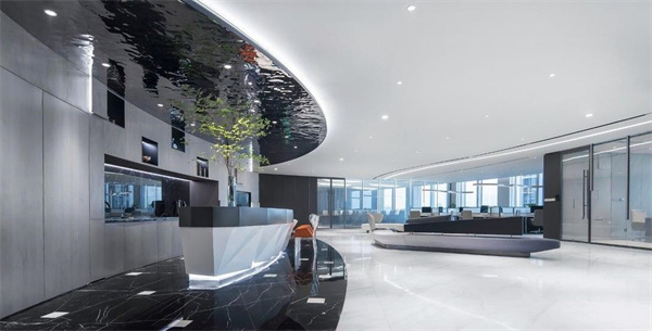 辦公空間本質(zhì)就是人在這個空間可以達(dá)成成就,在空間內(nèi)生活、工作時感到舒適與便捷更利于形成愉悅關(guān)系和情感,作為辦公室,商業(yè)禮儀尤為重要,主要是要讓來到這個空間的每一位客人都能感受到真誠,以動靜劃分每個區(qū)域,入口處就引入我們進(jìn)入整個空間,背景的不銹鋼豎條透過不同角度排列形成像風(fēng)拂過的琴鍵變化,水吧的頂面、地面、墻面形成一個獨(dú)立區(qū)域,水吧的切面的造型呼應(yīng)大廈的建筑結(jié)構(gòu),軟硬裝相互搭配呼應(yīng),與大自然融為一體,會議室和獨(dú)立辦公室的隔斷裝修使用霧化玻璃,獨(dú)立和開放的功能自由切換。