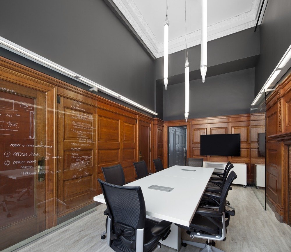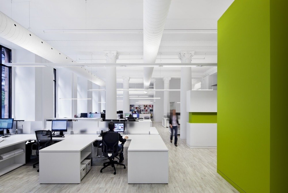 室內(nèi)原有環(huán)境已遭到嚴(yán)重破壞,領(lǐng)企設(shè)計(jì)師尊重建筑自身的文化價(jià)值,重在還原建筑曾經(jīng)的面貌:美麗的立柱,華麗的頂面裝飾線腳,原有的木飾面,巨大的立面開(kāi)窗以及明亮的色彩,以此來(lái)營(yíng)造一個(gè)富于激情的工作環(huán)境。
