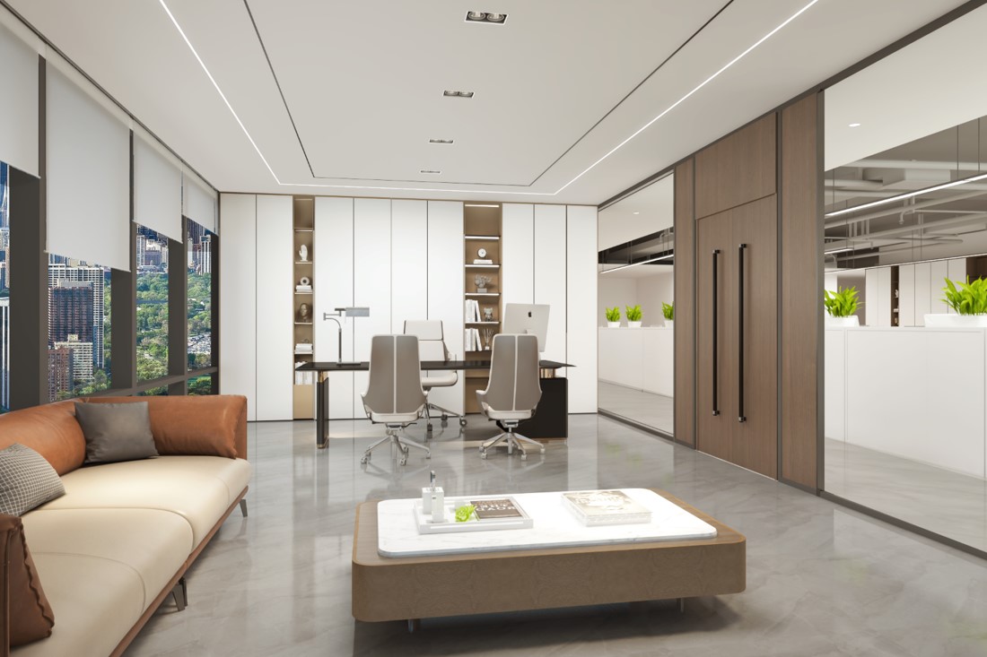 設(shè)計介紹:主要展示前臺、洽談區(qū)、走廊、貴賓區(qū)、會議室、辦公區(qū)等各個區(qū)域辦公室裝修效果圖,設(shè)計師們根據(jù)不同樓層采用采取不同辦公室裝修風(fēng)格,現(xiàn)代簡約、莊重凝練兩種風(fēng)格相互融合,主要以白色為主,更符合的公司形象。
