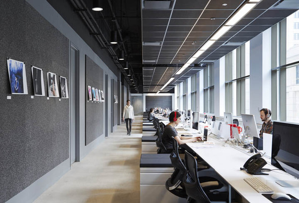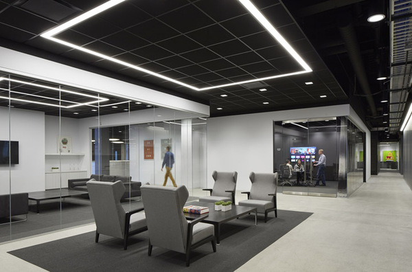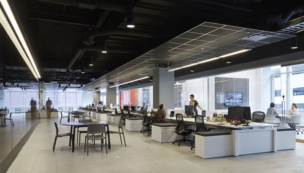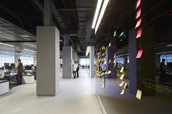 首先,拆除所有沿窗而設(shè)的獨立辦公室,所有會議室都裝上透明的落地玻璃。打開后的開放空間擁有良好的自然光線。開放的辦公理念也有利于促進團隊合作和臨時發(fā)起的頭腦風(fēng)暴。