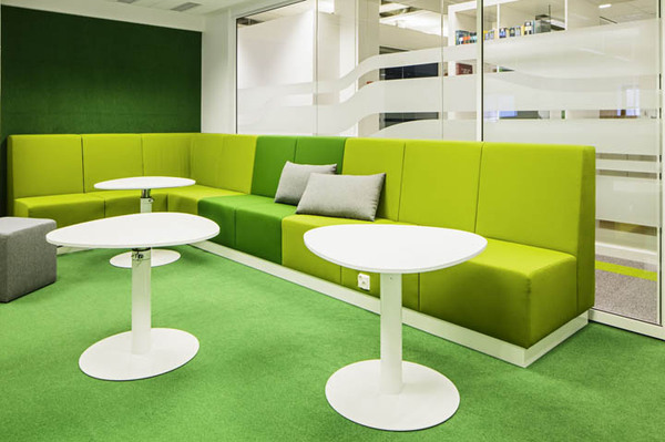 由弧形沙發(fā)構(gòu)筑的獨立空間功能強大,即可用作非正式小聚也可用作公司正式會議。