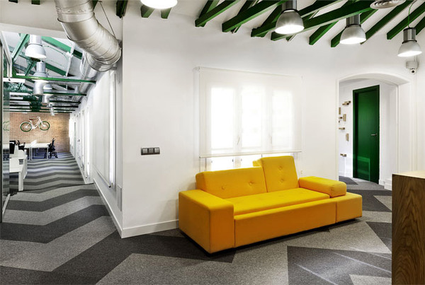 在辦公區(qū)域的設(shè)計上面,設(shè)計師主要采用黃色作為其中的色調(diào)之意,黃色給人輕快,充滿希望和活力的感覺。