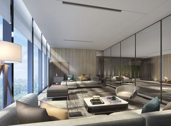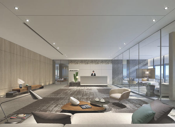 接待區(qū)域的設計:設計師在設計的時候,采用隔斷將其與前臺空間進行隔離,設計師希望讓客戶在等待的時候,可以觀賞外界的風景,同時空間的氛圍以寧靜為主,讓客戶在此地仿佛到了一個禪意空間中一般,可以不自覺的靜下心來,體會這難得的幽靜。