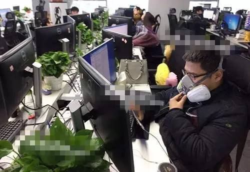 綠蘿、過(guò)濾器除異味 員工戴防毒面具辦公