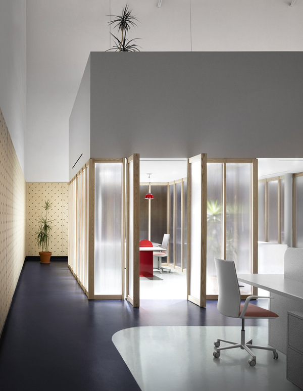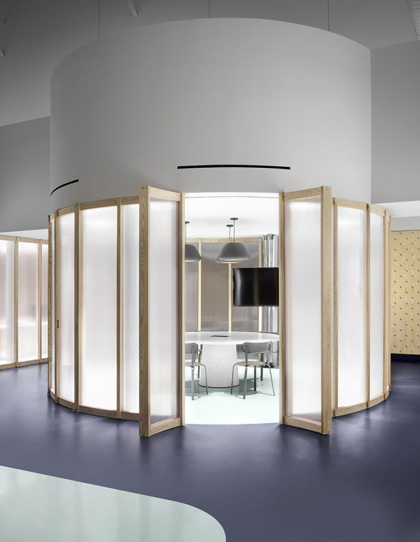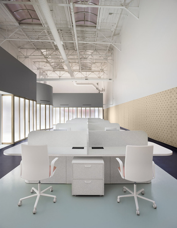 Gruppo Campari對(duì)于多倫多辦公室的設(shè)計(jì)要求十分簡(jiǎn)單,即創(chuàng)造一個(gè)充分體現(xiàn)公司精神并且可以激發(fā)使用者靈感的空間。Campari標(biāo)志性的海報(bào)有上百年歷史,種類豐富,充滿創(chuàng)意。建筑師從海報(bào)和食材中提取顏色、圖案以及形狀,并將它們層層重疊,直到形成一個(gè)平衡的三維空間。
