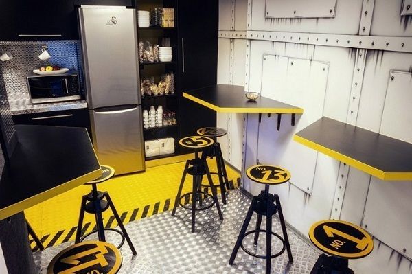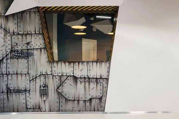 破舊的太空艙們、金屬質(zhì)感的墻壁、怪異的異星植物、貼著黃色警戒線的桌椅……一看這個(gè)風(fēng)格就是太空逃生游戲主題的辦公室設(shè)計(jì)!在這樣的的辦公室空間內(nèi)工作好像有種賦予了重大任務(wù)馬上要去拯救宇宙拯救地球的既視感了呢!