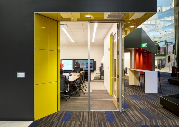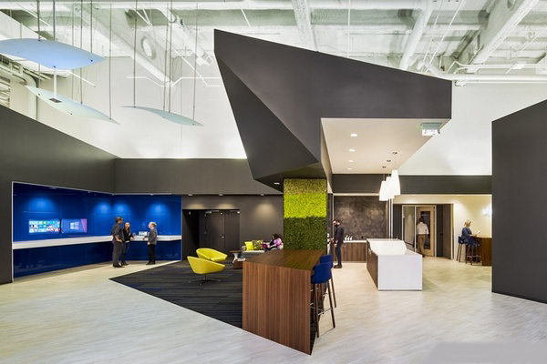 今天,上海辦公室裝修設計公司-領企裝飾要與大家分享的是,微軟集團位于美國舊金山的辦公室裝修設計。辦公室的樓面計劃利用了視野和微軟公司的商標來創(chuàng)造第一印象,既引人注目又能馬上被識別出來。目標是在人、場地和技術之間創(chuàng)造一個平衡。通過創(chuàng)造一個展示逐日變化的技術的陳列室,建成空間和技術之間的區(qū)別變模糊了。微軟公司的產(chǎn)品變成了帶領訪客穿過這個空間的車輪。