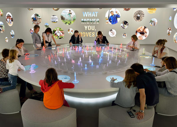 象征當下的Forum部分,通過交互式裝置,讓觀者意識到營養(yǎng)與健康行業(yè)的社會責任。象征未來的Visions部分,參觀者可以通過游戲和虛擬現(xiàn)實來體驗科學家的熱情和他們創(chuàng)意十足的發(fā)明。在一次次的互動體驗后,參觀者可以通過此次展會場地的辦公室裝修與設(shè)計所傳達出的理念以及自己的感悟來體會這個企業(yè)關(guān)于過去、現(xiàn)在和未來的每一段旅程,感受著一百五十年的歷史所蘊含的雀巢精神。
