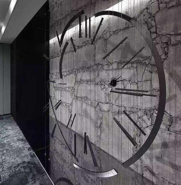 主辦公室墻面使用不銹鋼材質(zhì)搭配在隨性的是墻上拼成"Time is Money",標(biāo)志著企業(yè)形象與宗旨,代表著工業(yè)時(shí)代經(jīng)濟(jì)快速發(fā)展的時(shí)間流動(dòng)。背墻則以不經(jīng)刻意的仿舊石材創(chuàng)造中世紀(jì)堡壘材質(zhì),結(jié)合古今元素,間接扣合起「時(shí)間」的主軸。