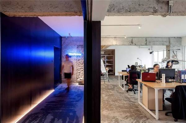 空間本身有著自己的語(yǔ)言與靈魂。綻放設(shè)計(jì)對(duì)原有空間通過(guò)剝離和重構(gòu)的手法,剝掉舊空間90%的原有飾面,大面積保留拆除過(guò)程中形成的隨機(jī)機(jī)理。因地制宜,還原空間本該有的氣質(zhì),來(lái)表達(dá)Blue Space對(duì)自由,開(kāi)放,返璞歸真狀態(tài)的追求。