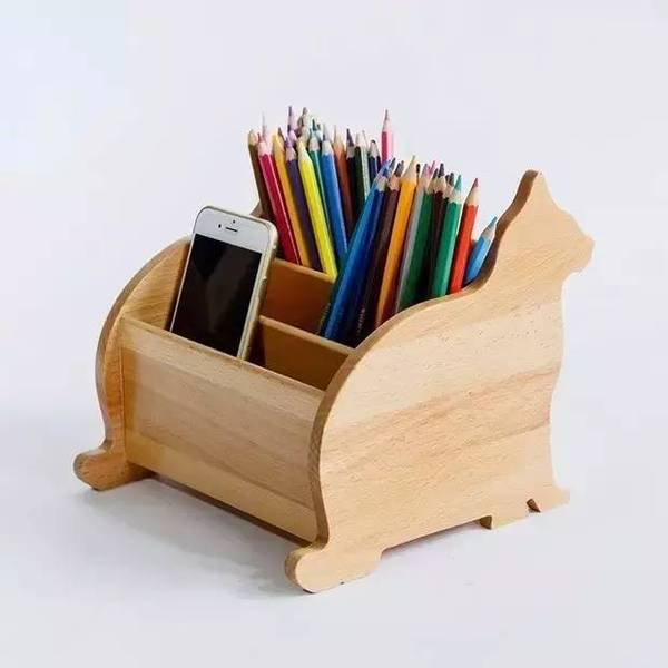 喜歡做手工的人都有很多不同種類的筆啊,顏料啊,工具之類的。所以有一個這樣分隔的收納盒對于他們來說還是比較方便的。木質盒子上清晰的紋理也讓桌面變得簡約而美好起來。