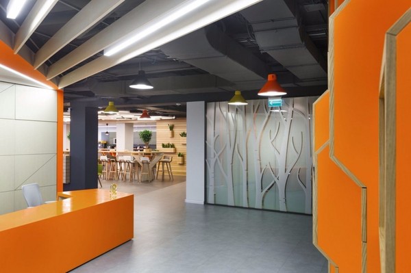 公司辦公室設(shè)計靈感主要來自于現(xiàn)代大城市的基礎(chǔ)設(shè)施構(gòu)造,工作區(qū)好比城市的商業(yè)區(qū);走廊就像城市的大街和小巷;員工餐廳展開來看就是一個可供休閑娛樂的公園。這個符合人體工程學(xué)的辦公空間,還被有效的分區(qū),這里有**的溝通區(qū),還有純天然的裝修材料,這些,為員工們高速有效的工作提供了**的辦公條件。