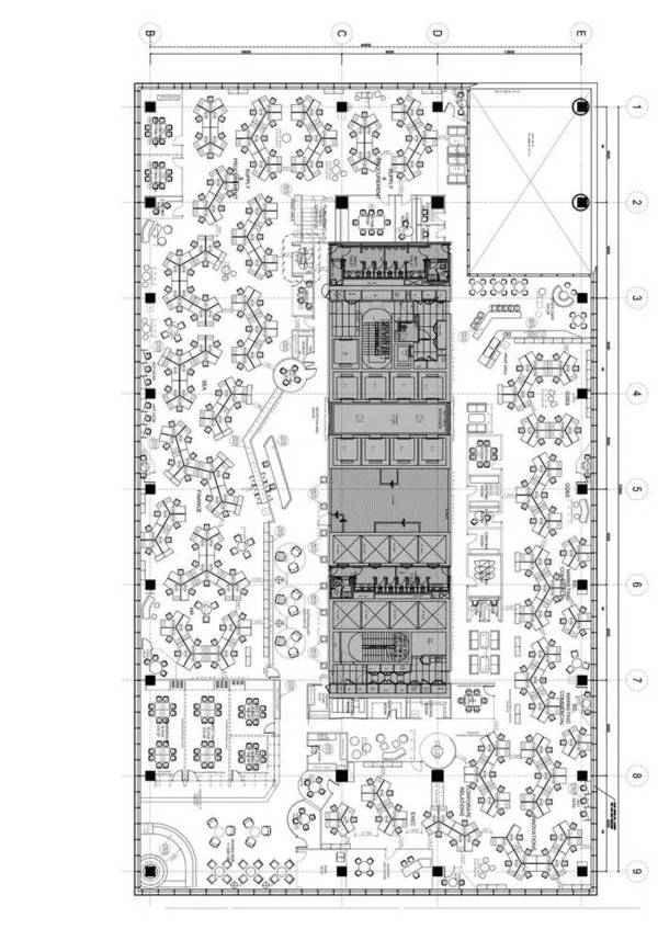 為了有效的利用空間,和**化的讓自然光透進室內(nèi),該辦公室采用了中間核心區(qū),外加周圍開放式的辦公區(qū)這一平面布局格式。開放式的區(qū)域里布置了流線型的工作區(qū),這樣的設(shè)計允許員工們自由的隨心移動辦公。天花板上裝飾著那些高檔酒水飲料的工作吧,就是非正式的辦公區(qū),那里還有一個咖啡吧,也是一個小小的休閑辦公區(qū)呢。