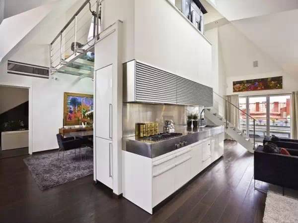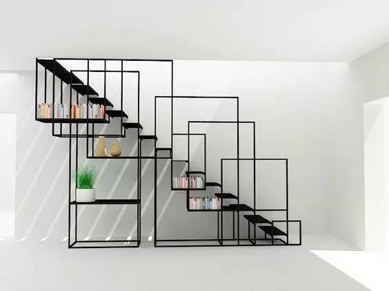 木質(zhì)或鐵藝懸浮樓梯在這個(gè)沉悶的空間成為了一個(gè)活潑的設(shè)計(jì)元素。