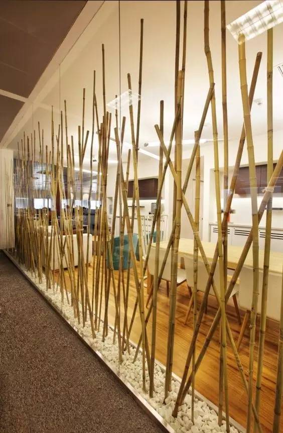 竹竿做的隔斷,稀疏的線條,讓光線在室內(nèi)自由流通,不會(huì)有實(shí)墻的那種壓抑感。