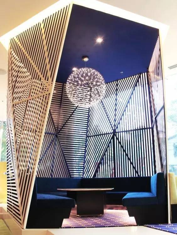 沙發(fā)背后一大方的隔斷,也是鏤空,鐵藝的材質(zhì)搭配幾何圖案,更為耐看。
