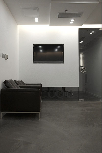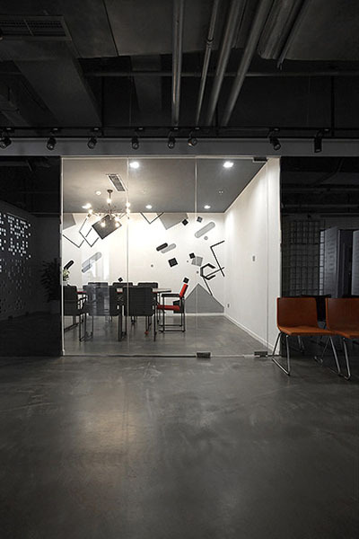 會客區(qū)的裝修采用同樣簡潔的風格,不做過多修飾,沙發(fā)座椅、墻面LOGO和一副壁畫。整個辦公室裝修加入了一個立體設計,在墻面及天花板上都可以看到,能非常有效的營造室內空間感。