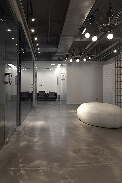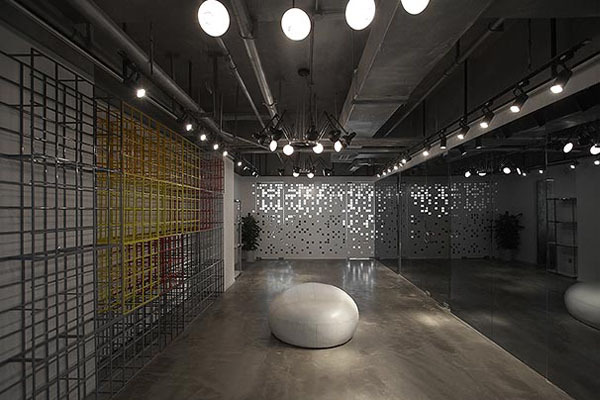 辦公隔斷獨具個性,鏤空的設計讓視線變得模糊又不至于封閉整個空間;地板仿佛是粗糙的水泥地板,事實上這種樸素的設計卻是出于裝修風格的要求。