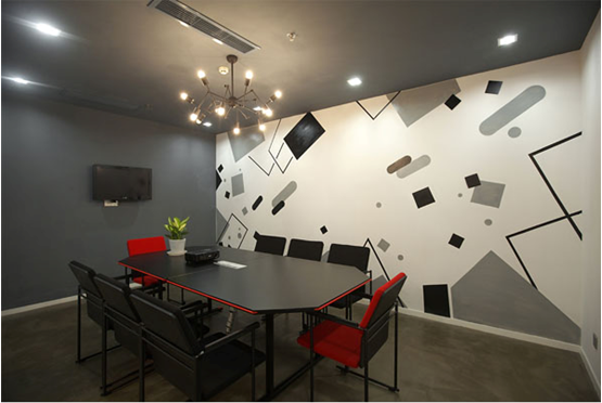 如果說實木轉門上的藝術創(chuàng)作并不稀奇,那么在空置的背景墻上噴刷一副創(chuàng)意涂鴉,這樣子改變辦公環(huán)境應該是****的方法了吧?
