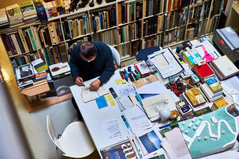 相較于伊東豐雄作品中一貫的簡(jiǎn)潔線條,他的辦公室卻意外地被一疊又一疊的合約文件掩埋。可凌亂的文件似乎以另一種美感沖擊的觀者的視野,讓我們?cè)诓煌珘K毫無規(guī)律的羅列中,體味到設(shè)計(jì)師的隨手之美。