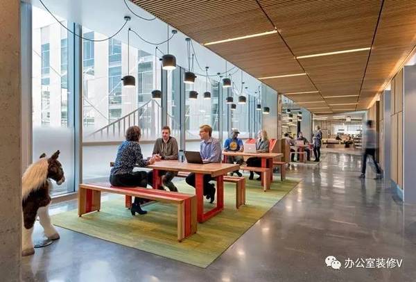 設(shè)計團隊將舊金山的城市格局與企業(yè)的品牌元素相結(jié)合,以街景式平面布局創(chuàng)建出一條條寬廣的大道,營造出休閑舒適的都市氛圍。
