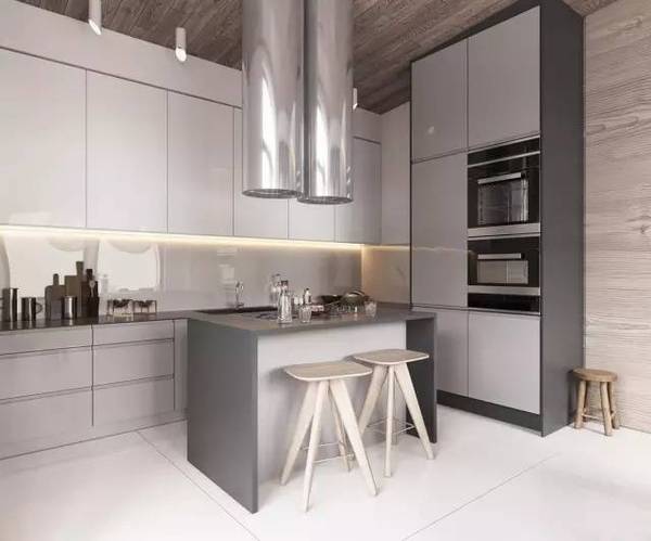 簡潔利落的廚房,表面沒有多余的裝飾,但金屬感的設(shè)計(jì)酷勁兒十足,在材質(zhì)的沖撞中凸顯質(zhì)感。