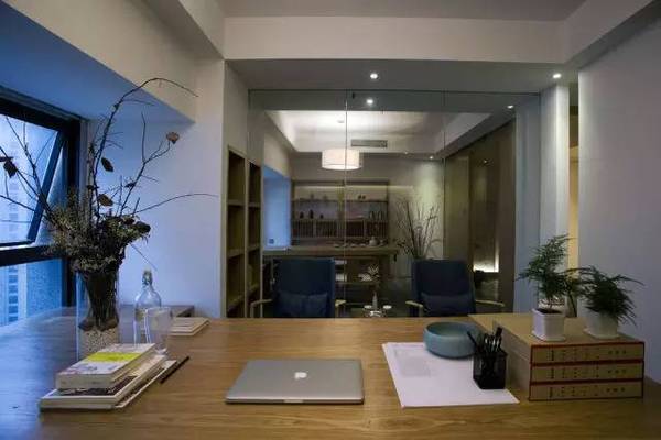 本案中式辦公室設(shè)計(jì)以素雅簡單為主,使用單一簡單的木飾材料與白色墻面形成對比增加空間的層次感,空間大量采用留白的手法,插入些造型細(xì)節(jié),讓立面顯得干凈而又不會太過蒼白單調(diào),再用暖色燈光中和白色墻面的冷,使整個(gè)空間看上去非常的溫馨干凈。
