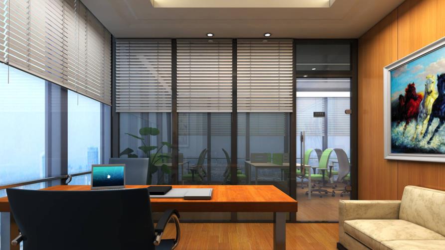 顏色設(shè)計可以奠定主管辦公室的基調(diào),比方橙、黃、紅、藍多種顏色搭配營建出生動感;大面積白色營建出亮堂感;棕色給人穩(wěn)重感。所以主管辦公室裝修時要盡量少采用色差大的顏色,應多挑選灰色、棕色等深色彩為主色調(diào)。辦公室裝修中在主色調(diào)的選擇上應選擇沉穩(wěn)凝練的色彩,既可以表現(xiàn)出裝修的奢華感,也能營建出大氣感,從側(cè)面更高展現(xiàn)公司實力。裝飾上可以采用書柜,綠色植物,裝飾畫等點綴。