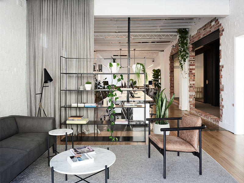 1、廣告公司溫馨的辦公室設(shè)計:設(shè)計團隊打破傳統(tǒng)辦公室冰冷擁擠的格局,而是把它像“家”一樣對待。高挑的辦公空間設(shè)計為兩層,幾乎全部采用白色,簡潔干凈,辦公室擁有良好的采光,并選用低矮的家具讓陽光與空氣可以在室內(nèi)自由流通,甚至是儲物架,也選用與地面材質(zhì)相同的淡色木制材料,鏤空的木格設(shè)計一方面可以用來擺設(shè)簡單的藝術(shù)品,另一方面也與整個空間營造出的“空”的氛圍互相呼應(yīng)??臻g大量的留白與溫潤的木質(zhì)地面貫穿整個空間,營造出舒適無壓的工作環(huán)境。垂落的綠色藤蔓增添空間的活力與生機,座椅也選用了綠色掉,在色彩上相互呼應(yīng)。