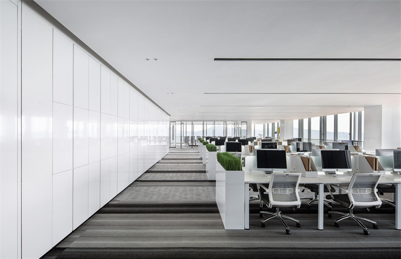 整體辦公區(qū)裝修空間大,員工聚集的地方,一定要注意空氣流通和光線充足的問題。這些都可以通過門、窗、燈來實(shí)現(xiàn)。確保人們?cè)谑孢m的環(huán)境中工作。