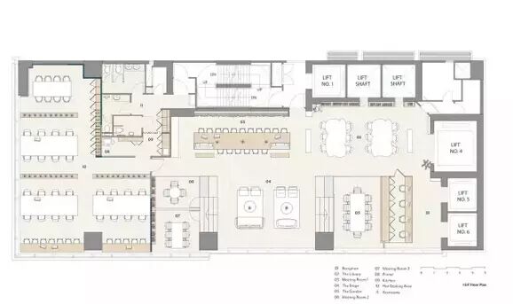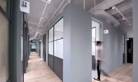 金屬、磨砂玻璃作為隔斷,區(qū)分各個(gè)辦公區(qū)域,在不妨礙采光度的同時(shí),維護(hù)了不同用戶在商業(yè)上的隱私。?