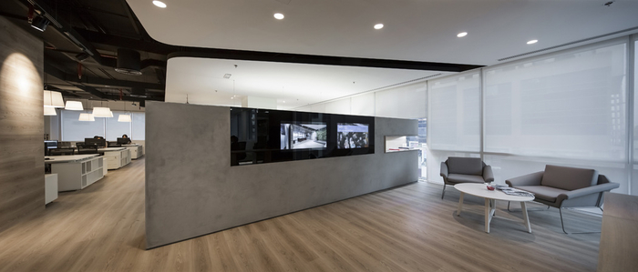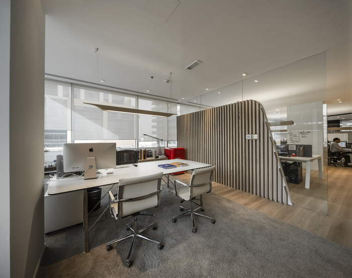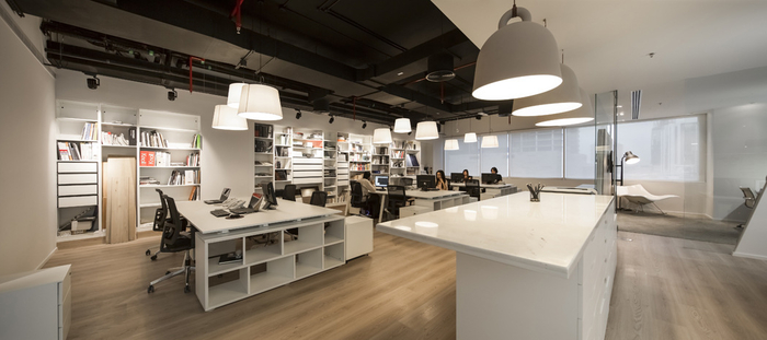 此外,自定義的燈掛在整個辦公室,可以根據(jù)*終用戶個性化。設(shè)計師整合背后隱藏的門廚房。由于沒有窗戶,它的內(nèi)部被設(shè)計成一個小咖啡店,考慮到一個溫暖的氣氛(在墻上的瓷磚,鵝卵石地板磚,更經(jīng)典的廚房單元,咖啡桌)。總體而言,這個項目已經(jīng)取得了一個正確的平衡空間,材料和功能,考慮到的挑戰(zhàn),其結(jié)果正是客戶所期待的:一個友好的工作環(huán)境與觸摸的“哇效果”的游客。