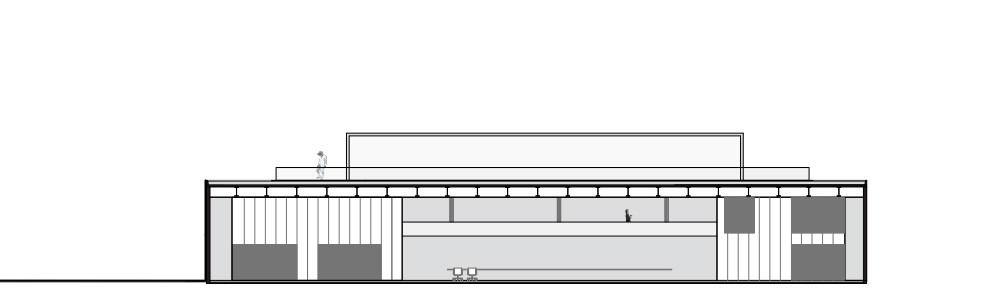 千羽工作室的建筑在長方形的土地上被分為兩部分,北部是43.5米長7.2寬的花園,南部為43.5米長12.2米寬的工作室主體結(jié)構(gòu)。工作室的入口在花園一側(cè),通過一排滑動的金屬門可以進入到工作室內(nèi)?;瑒娱T全部打開可以直接與外部花園共享,進入建筑內(nèi)可以看到一個混凝土人行道在空中將兩個木制盒型的空間鏈接,而且具有很強的視覺沖擊力。