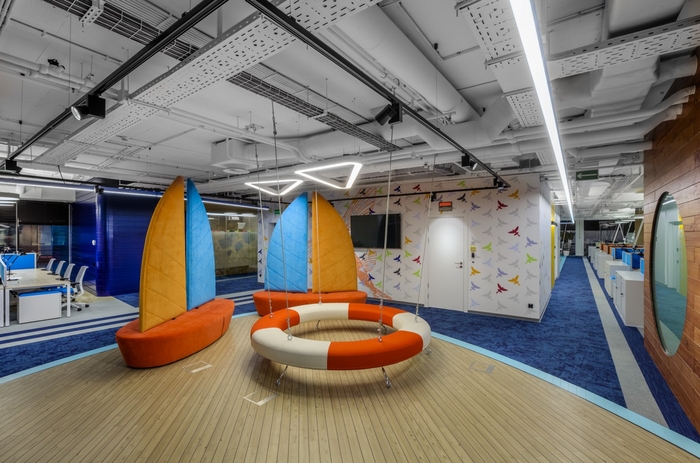 辦公室計劃以活動為基礎(chǔ)的設(shè)計原則。這意味著所有的工作情況和流程,無論是設(shè)計團(tuán)隊的一個激烈的協(xié)商,一個雇員或機(jī)密tet-a-tet談話或其他重點(diǎn)工作,從與建筑師的建筑師提供了一個適當(dāng)?shù)膮^(qū)創(chuàng)造了便利的條件。團(tuán)隊工作非常關(guān)注:布局和家具解決方案鼓勵員工的溝通和合作。有許多方便和多樣化的內(nèi)部區(qū)組從兩個或三個到十二人,約匹配的設(shè)計團(tuán)隊的數(shù)量。
